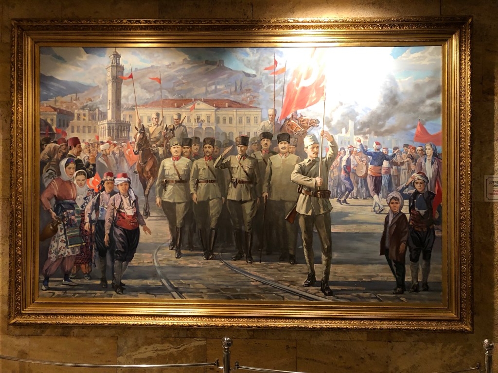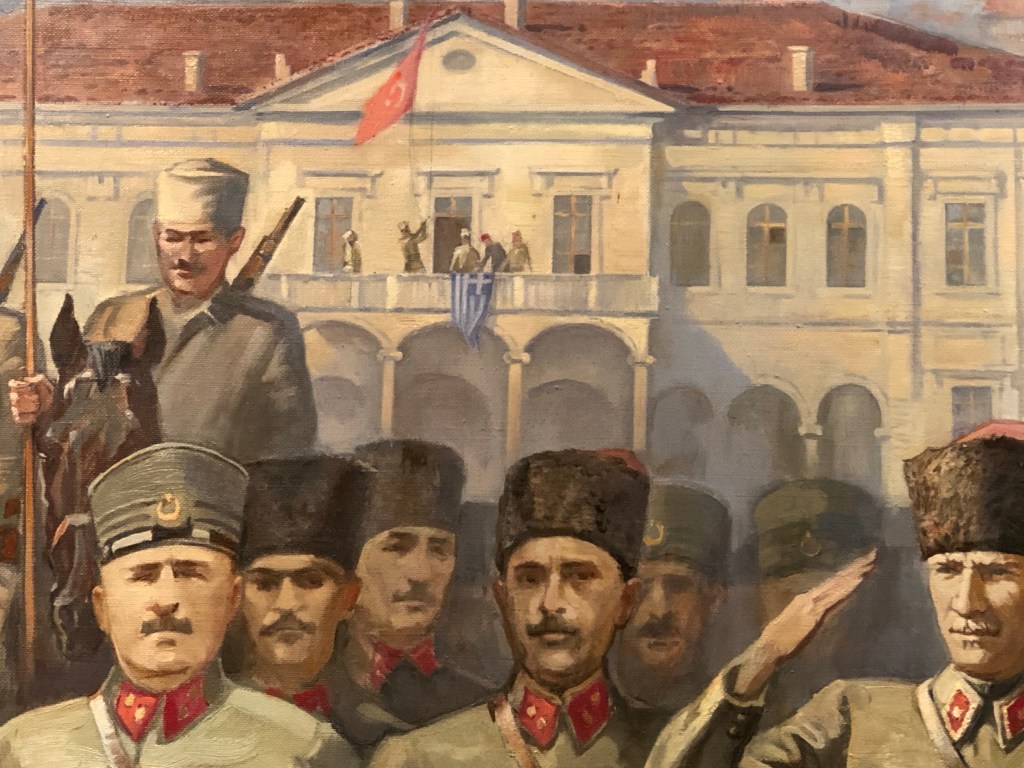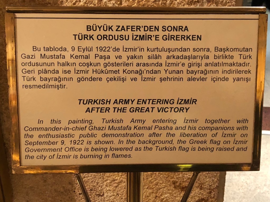 This painting depicts what Turks call refer to as the “1922 Izmir Fire” or “the Great Victory”: