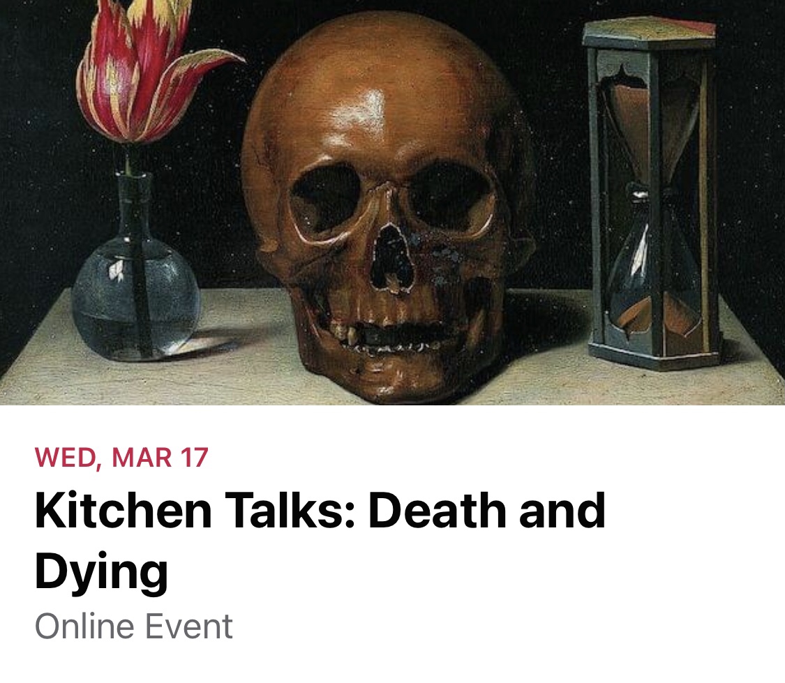 This evening, a friend of mine named Josh Nadeau hosted a “Kitchen Talks” event on death and dying and so, naturally, I had to attend.